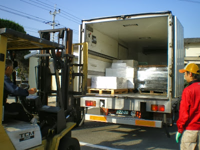 ![]() 港から私たちのセラーまでは保冷トラックにて定温輸送を行います |